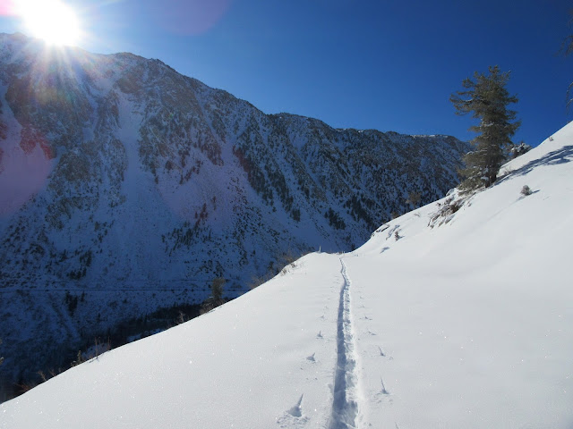 But by the time I was up on the North Lake road I was breaking trail in several inches - better!